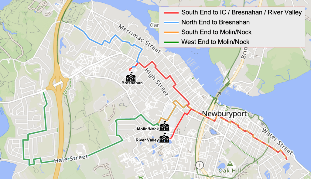 As the map below shows, many neighborhoods in Newburyport are now within a few blocks of a bike bus.