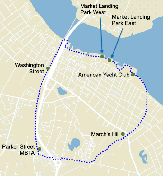 ••• Off Parker Street opposite the MBTA Commuter Rail Station